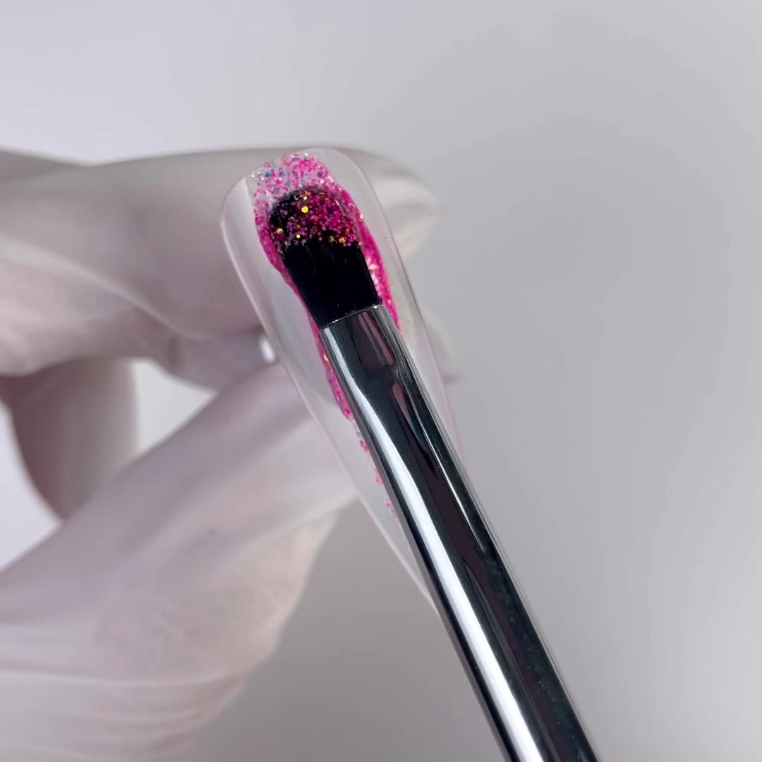 A hot-pink foundation is the perfect background for these flashes of amber. Flashes of amber and pink glitter twinkle throughout this neon glitter gel.